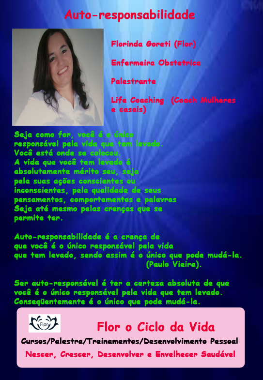 AUTORESPONSABILIDADE é a certeza absoluta que eu sou a única resposável pela vida que eu tenho levado